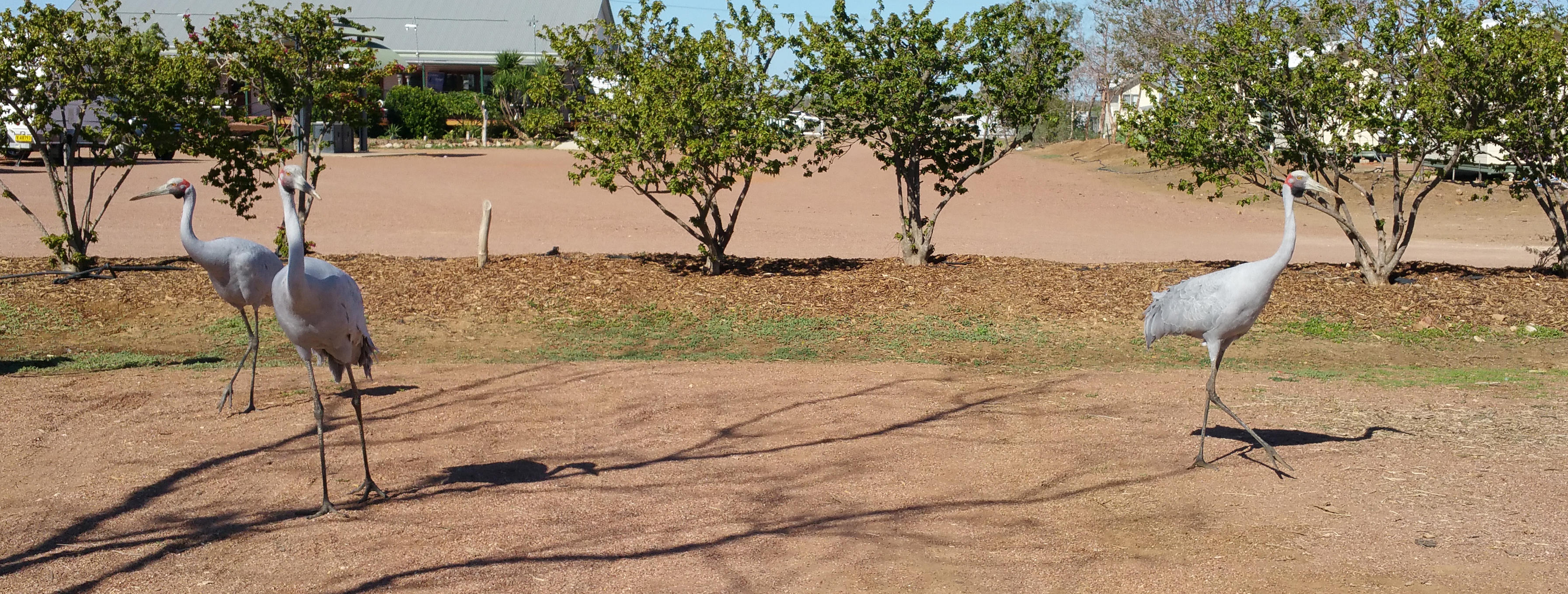 There is a lot of bird life in Longreach. The amazing ones are the Brolgas which are a bit tame ans visit the caravan camp looking for a feed. At over a metre tall, you are not inclined to disappoint.