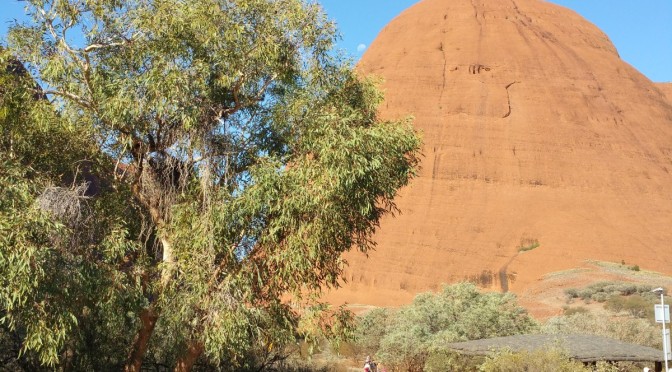 A short distance from Uluru (50km or a 45 minute drive – distances are so relative out here) you find the Kata Tjuta. From the distance, the two rocks look much the same, but Kata Tjuta is conglomerate whereas Uluru is sandstone.