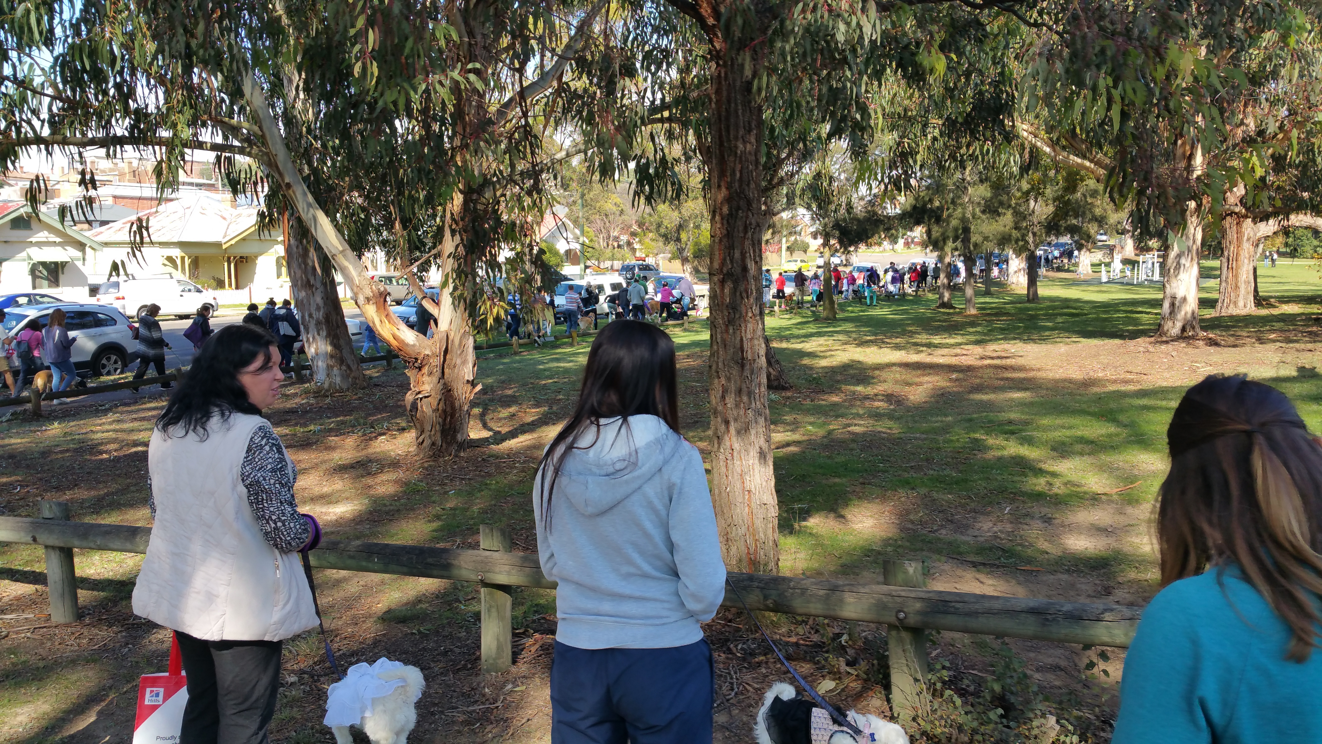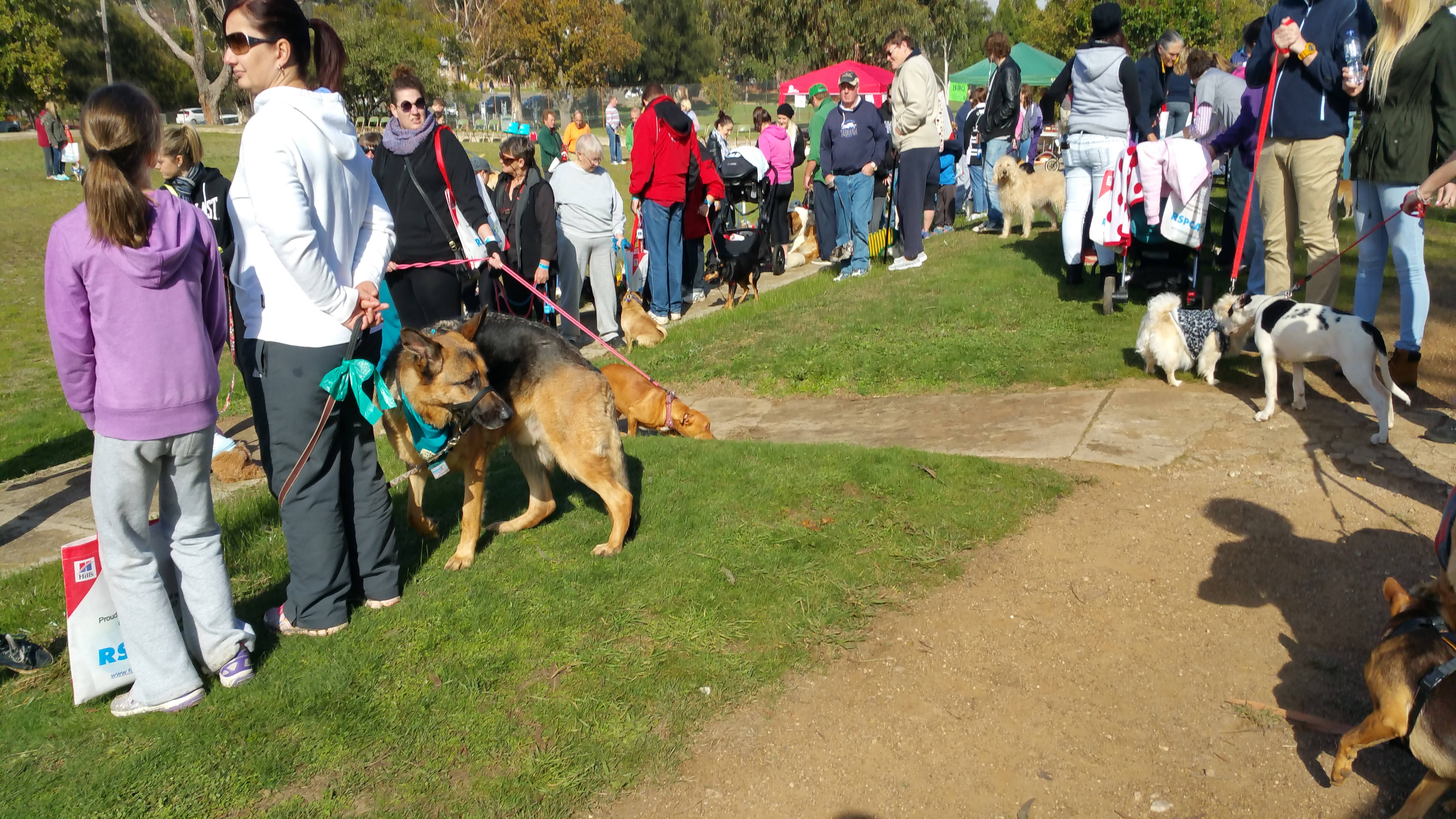 Today was the RSPCA “Million Paw Walk” fundraiser. One of my neighbours mentioned it to me while fussing over Pip a couple of days ago. (Caravan neighbours talk much more than house neighbours – perhaps because they know they won’t have to put up with you much longer!) I thought – why not. So we reached Victoria Park, Goulburn this morning and found an old bowling green filled with dogs