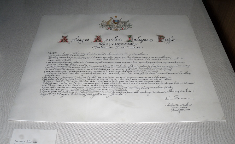 ApologyToTheAboriginalPeople2Other significant documents there included the Apology to the Aboriginal People delivered by Kevin Rudd. Several significant artworks covered the history of the place, including a Tom Roberts and an Arthur Boyd.