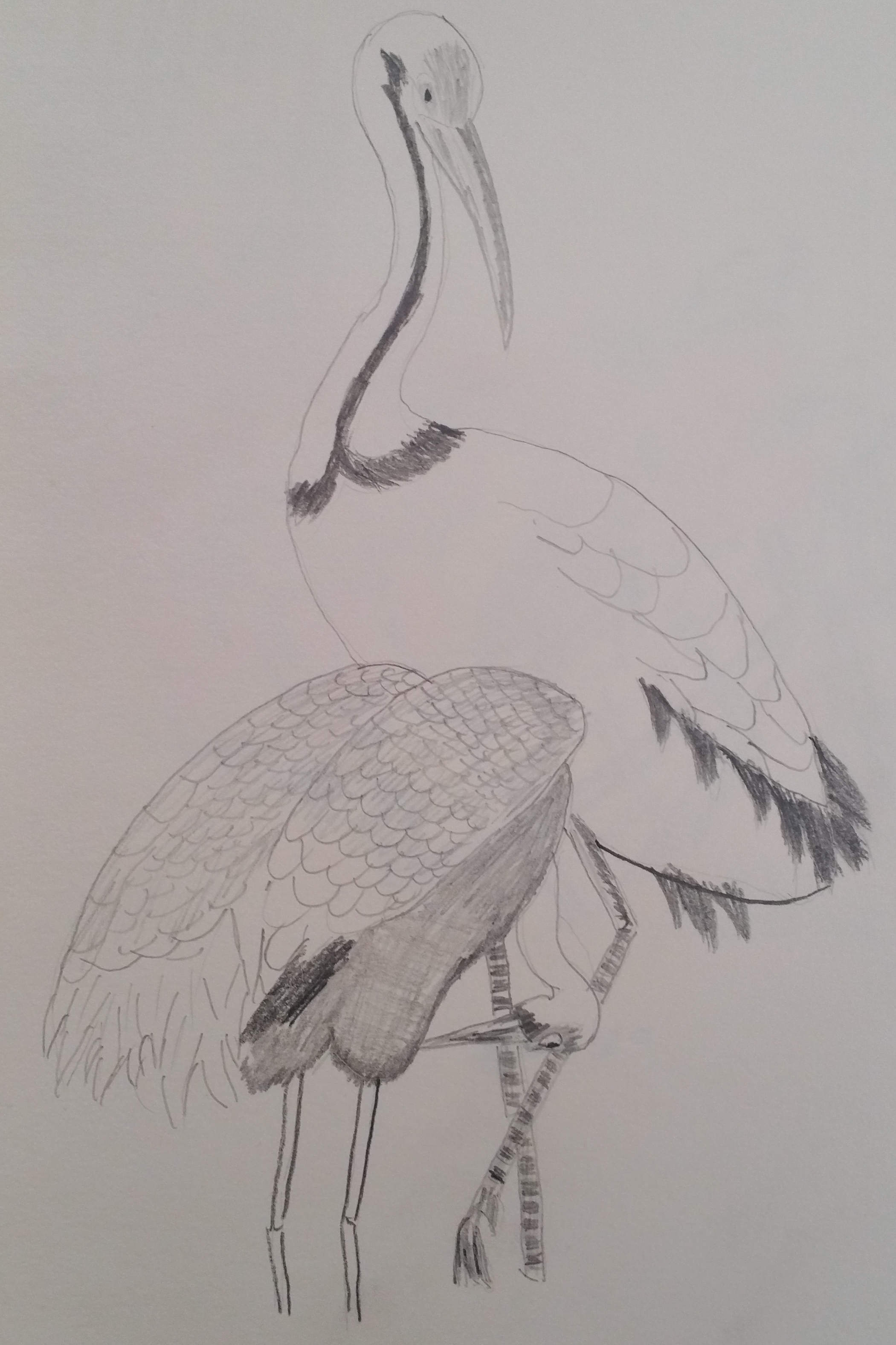 Ash and I went to the National Gallery of Australia today to try our hands at sketching. I gave Alex the choice of era and culture, and he chose Asian Art. We found ourselves seated in front of a Japanese screen featuring cranes. (I cannot think of anything harder to sketch than Japanese cranes – give me Paul Klee anytime!)