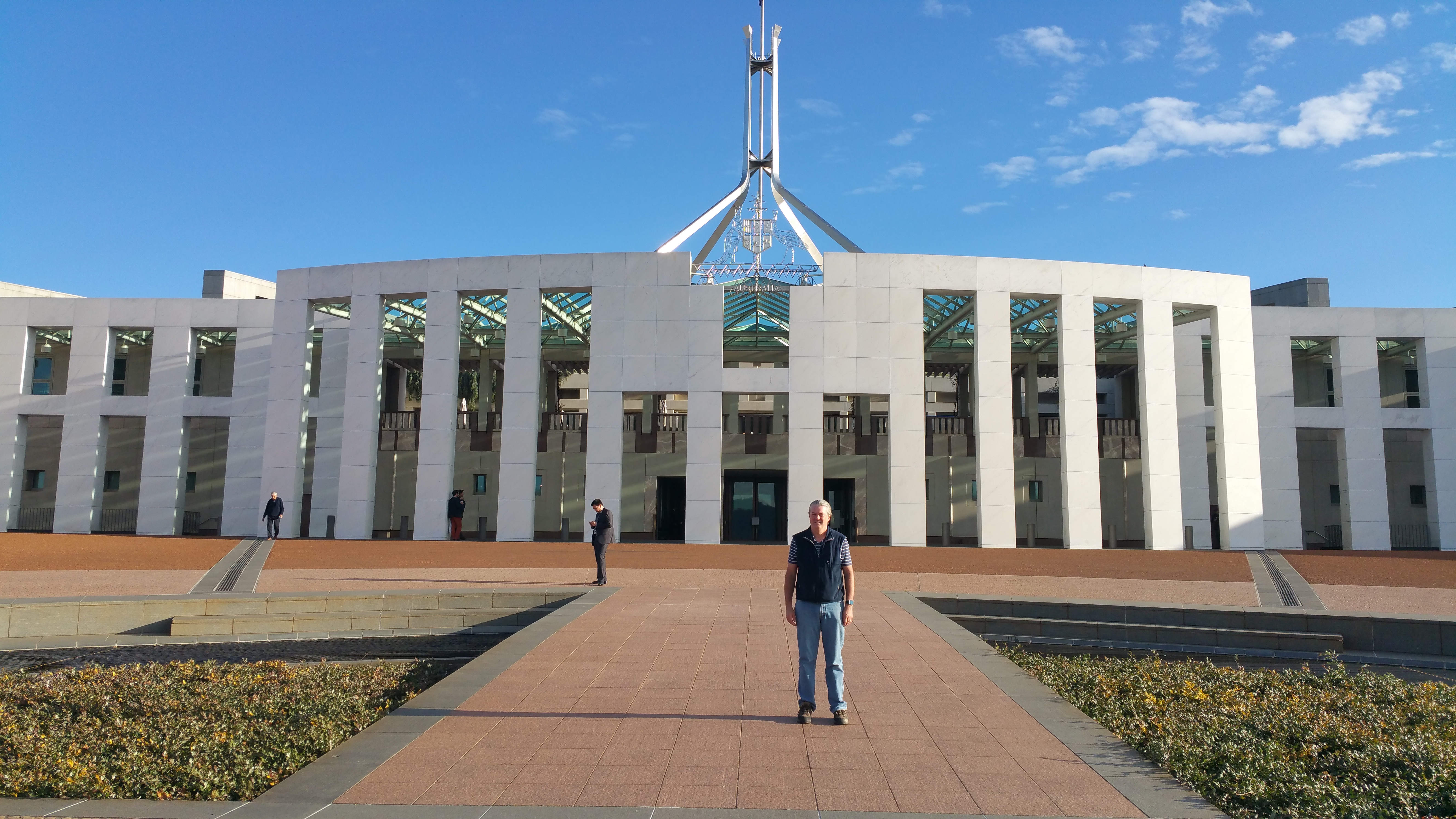 NewParliamentHouseAndMeYesterday Ash and I visited the old and new Parliament House. Apart from the fact that I was accompanied by a teenager, it was a very interesting visit and a beautiful day to be out in.