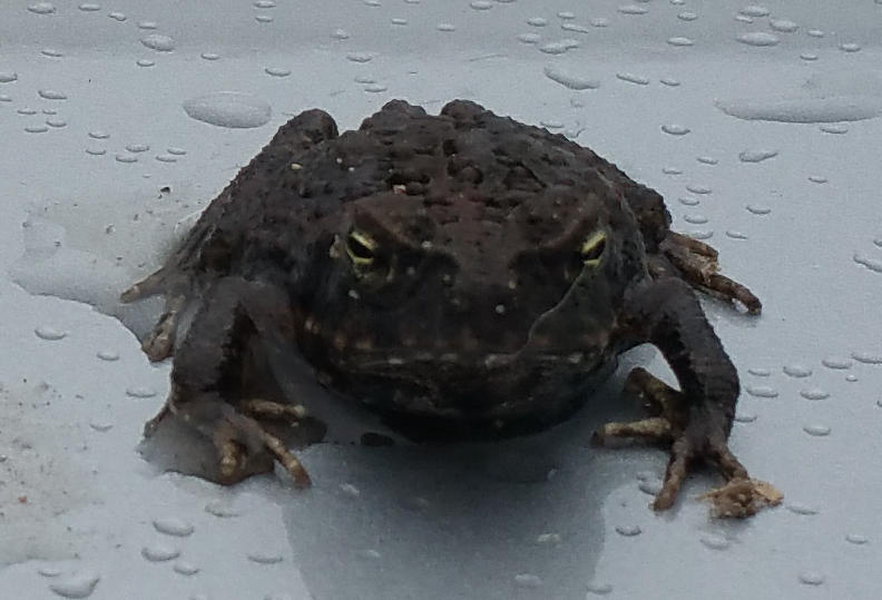 Just as we were leaving the Brunswick River, I rescued a poor little froggy who was hiding under the wheels of the caravan. I popped it onto the car bonnet to keep it from being crushed and to get a photo. I have since realised that it was our first cane toad. Fortunately, I have not come out in a rash or had weird dreams from touching him.