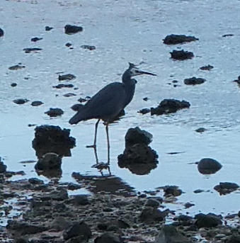 Moonee Beach is a bit north of Coffs Harbour. As noted in the previous post, we were very lucky to get into it, arriving just after six; most caravan park receptions close at five, this one at six and they answered the after hours number. We stumbled well! It is a beautiful location on the Solitary Islands Walk GreyCranewith a tidal creek (Moonee Creek) running past the camp ground. It is home of the Sooty Oyster Catcher, which did not let us approach within smarty phone photo range with our hairy mutt. There were a number of herons, cranes, ducks, plovers and a lot of fish.