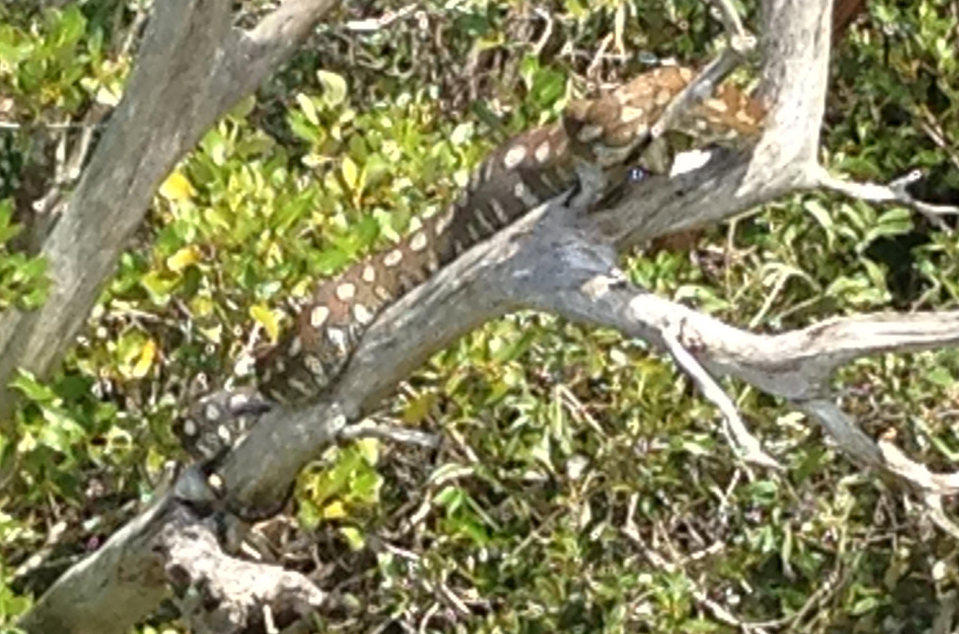 Here is the cause of my anxiety. We got to within 5 metres of her before I clued up to the interesting diamond pattern in the tree.