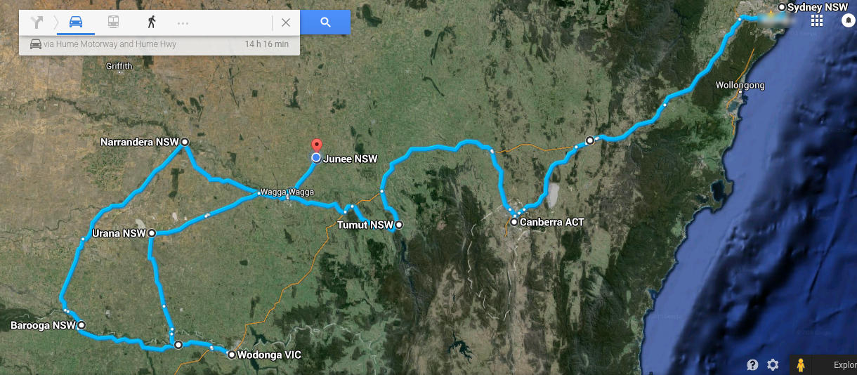 With Ash in Sydney, we have changed course. The next stop was to Mildura for him to do some fruit-picking, and then into the desert. However, Carmel and I still want him to come with us, so we are staying within a one day car drive of Sydney waiting for him to get tired of trying to leave on his own. We are moving up north and are now thinking of Cooktown and the Daintree, rather than Uluru. Here is our travel pattern so far.